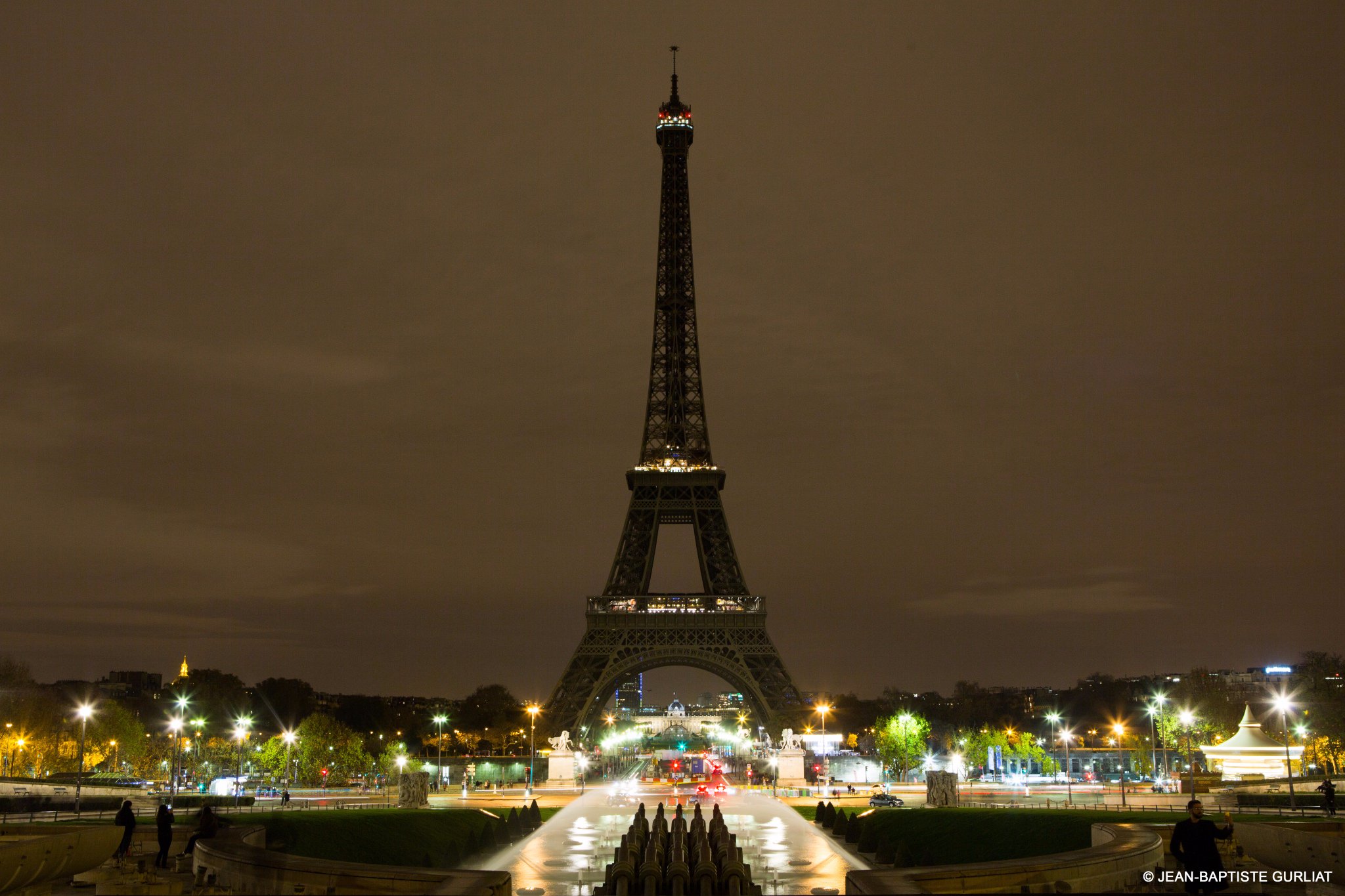 The tower this time stands in darkness to honor those killed in Las Vegas, in contrast to her usual sparkle.